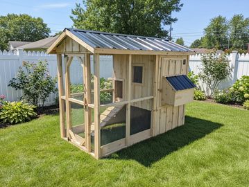 Built 18 inches above the ground to allow for more run space for chickens. Includes ramp up to coop. Clearance in coop is minimum 5ft.